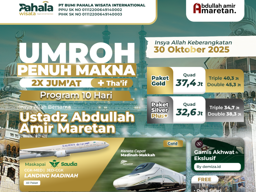 [PAKET GOLD] Umroh Penuh Makna 2x Jum'at + Tha'if (30 Oktober)