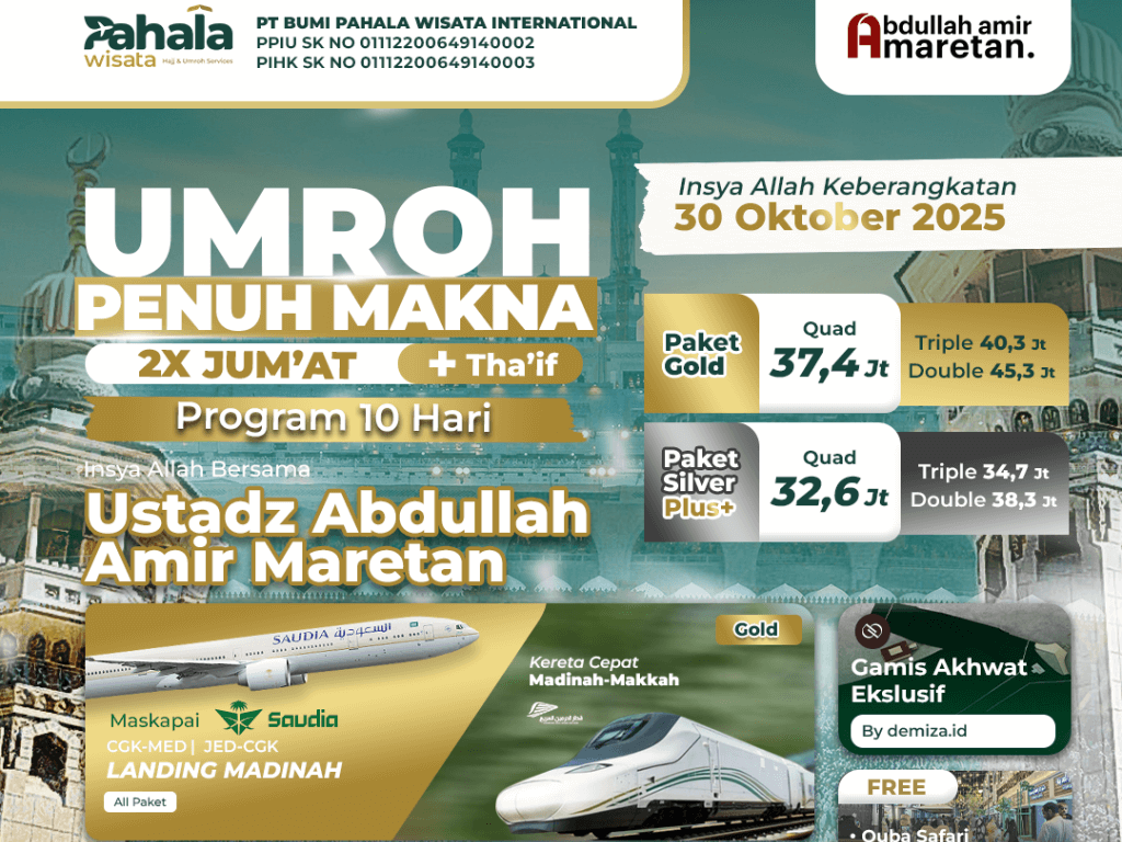 [PAKET SILVER+] Umroh Penuh Makna 2x Jum'at + Tha'if (30 Oktober)