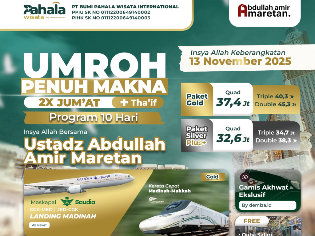 [PAKET GOLD] Umroh Penuh Makna 2x Jumat + Tha'if (13 November 2025)